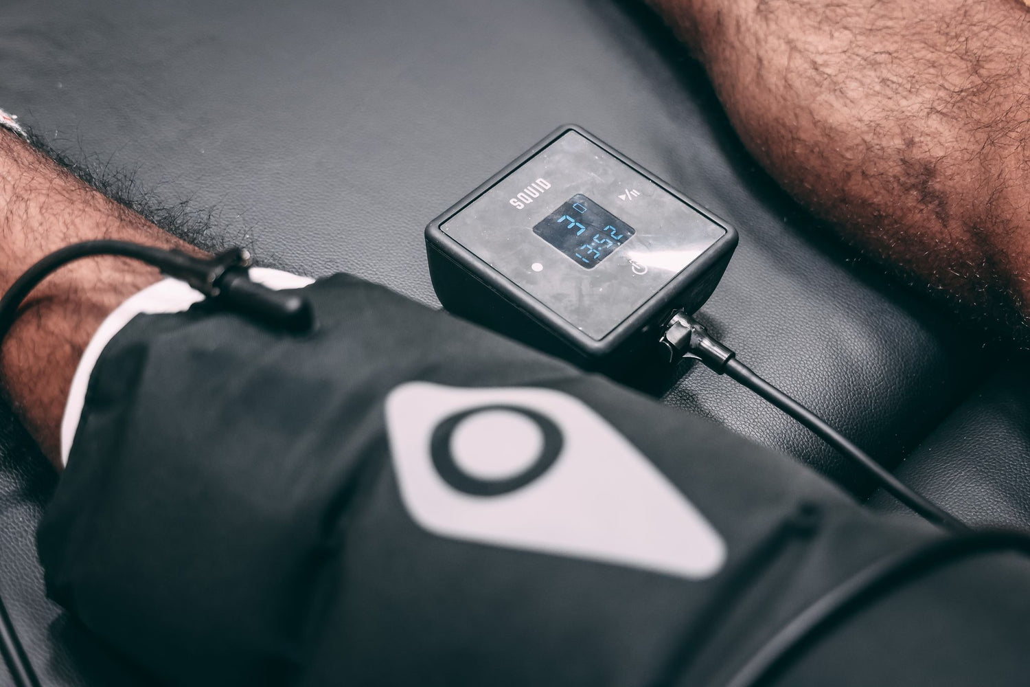 The portable and rechargeable SQUID GO Pump provides intermittent air pressure, sequentially filling air bladders within the wraps, to create (sequential) intermittent compression. The inflation/deflation cycle times are automatically programmed to create the most effective treatment, at any level of compression, during the 15 minute treatment time.